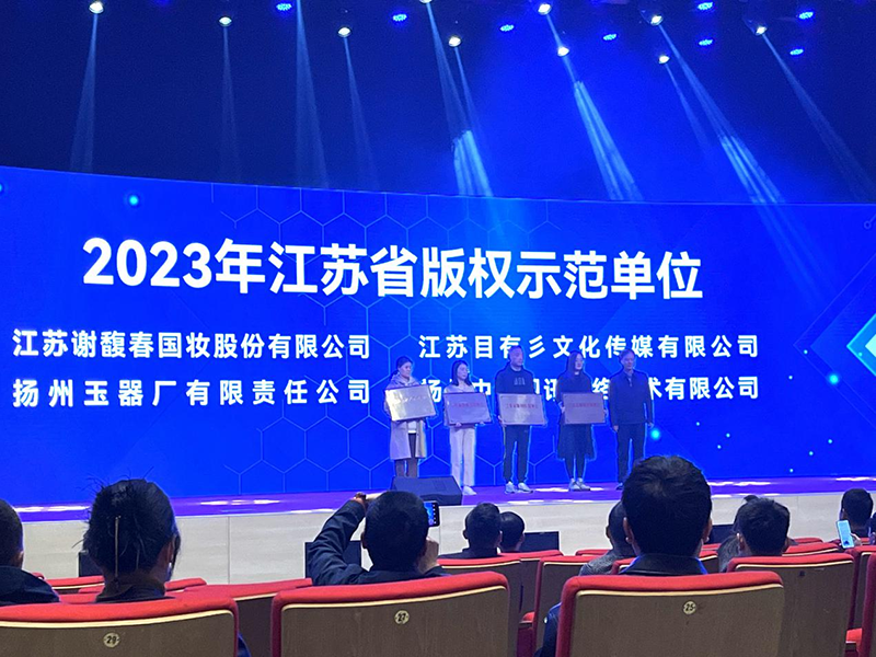 2023年(nián)4月25日上午,由江蘇省委宣傳部(江蘇省版權局)、江蘇省文聯、揚州市委宣傳部(揚州市版權局)共同主辦的(de)2023年(nián)江蘇省暨揚州市“4·26”版權宣傳周活動在廣陵區舉行。活動現場揚州市人民政府副市長(cháng)劉流同志、江蘇省新聞版權局(省版權局)副局長(cháng)李貞強同志先後緻辭講話。活動期間舉行了“江蘇省版權示範單位”授牌儀式,江蘇謝馥春國(guó)妝股份有限公司等4家單位被授予江蘇省“版權示範單位”稱号。市委常委、宣傳部部長(cháng)張長(cháng)金、市委宣傳部、揚州運河文化投資集團分管領導,廣陵區委分管領導,市文化市場綜合行政執法支隊主要負責人等出席儀式。