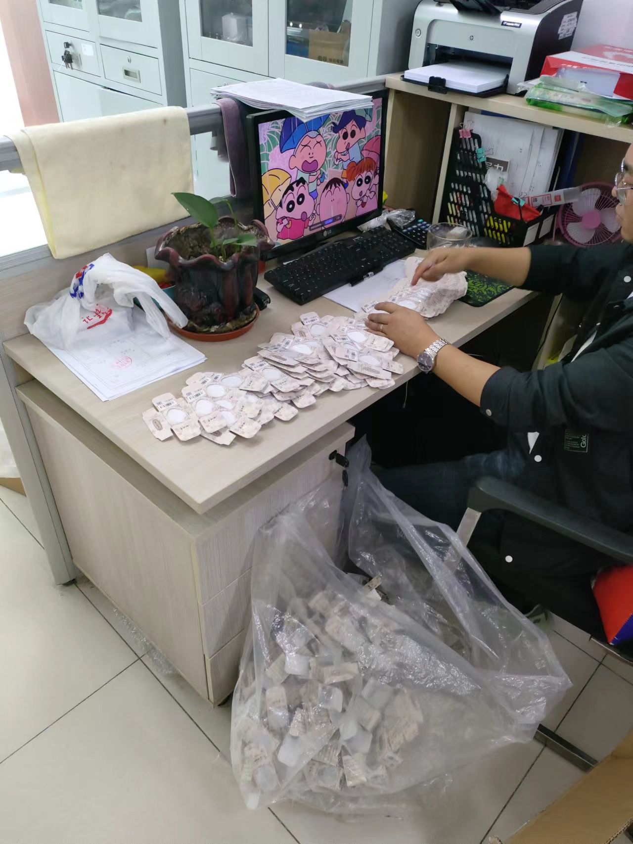 5月生産計劃1550萬,為(wèi)了保證銷售各部貨物充足,車間員工放棄午休時間跟周六休息日,加班加點趕生産。生産部辦公室人員,忙完手頭工作之餘,也在加緊做(zuò)些疊盒子(zǐ)的(de)工作。