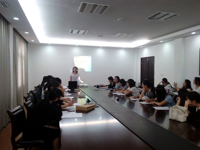 為(wèi)提升員工英語口語交流能力,更好适應公司營銷工作需要,九月十日下午,公司邀請揚州大學(xué)外國(guó)語學(xué)院“百靈果”翻譯實踐團隊講師圍繞《謝馥春英文史話》 、《謝馥春産品英文解析》為(wèi)部分一(yī)線銷售人員進行了英語口語培訓。現場培訓中,參訓員工學(xué)習熱情高(gāo)漲、态度認真,講師也與員工頻頻互動,現場氣氛十分熱烈。